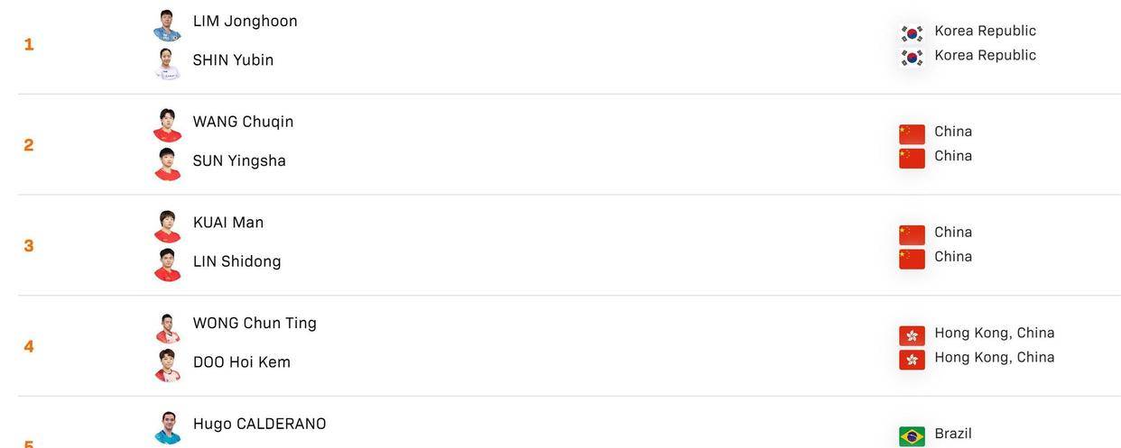 乒乓球混双排名出炉!孙颖莎世界杯投注平台推荐-正规投注平台对比·赔率玩法解析+王楚钦排名第2林钟勋+申裕斌榜首